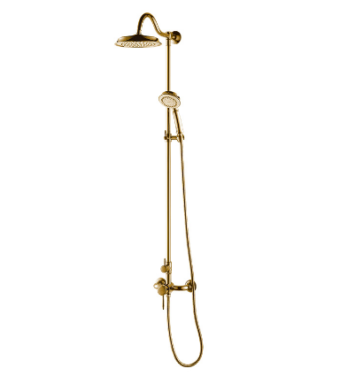 型号:AMG12G813J/Q 品名: 竹风系列 单把两功能淋浴花洒 尺寸: 顶喷Φ200mm 推荐水压: 0.15MPa~0.5MPa 材质工艺: 本体铜质镀金/镀青铜 吐水口: 起泡器