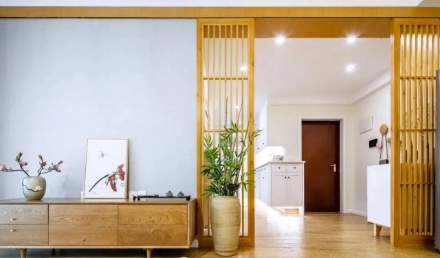 如果入户门到卫生间距离不长,可以考虑木质栅栏隔断和铁艺镂空隔断,都能很好地将玄关区域和家居空间分隔开来。