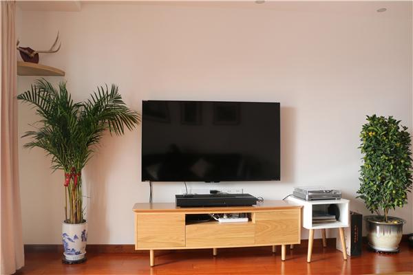 电视直接挂墙上,放个小电视柜很够用。