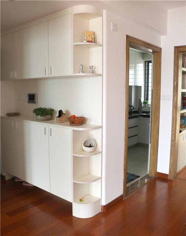 玄关做了一个转角鞋柜,做的挺大的,主要是实用。